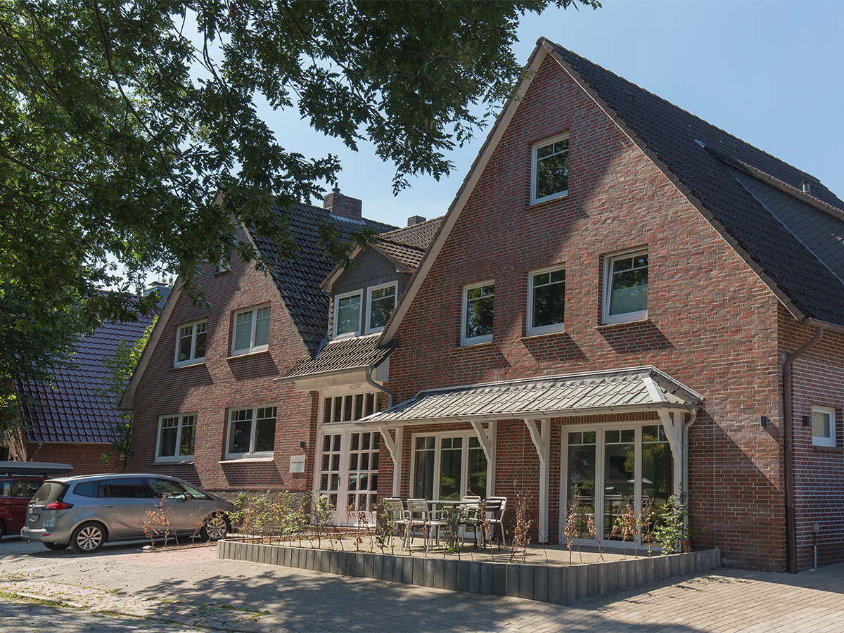 Die Wohnungen Fresenhuus 1 bis 4 befinden sich in einem Friesenhaus mit dem regionaltypischen roten Klinker. Neben tollem Gartenblick bestechen die Wohnungen durch ihren kilometerweiten, unverbauten Weitblick über die Koppeln und Wiesen Richtung Deich.