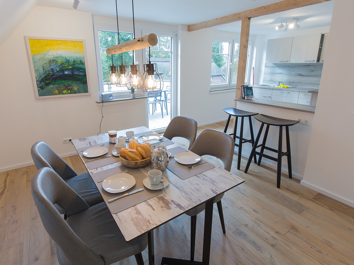 Urlaub deluxe auf dem Land und nah zum Strand- Tolle Ferienwohnung mit großem Sonnenbalkon, Garten- und Deichblick, Küchentheke und Highspeed-WLAN. Diese Ferienwohnung empfängt ihre Gäste in hellen Farbtönen und ist zudem sehr komfortabel eingerichtet. Die großzügige Wohnfläche bietet zwei separate Schlafzimmer für Erwachsene und ein Kind sowie ein edles Bad mit Walk-In Regendusche. Sie werden in dieser Wohnung entspannte Urlaubstage mit der Familie oder Ihrem Partner verbringen.