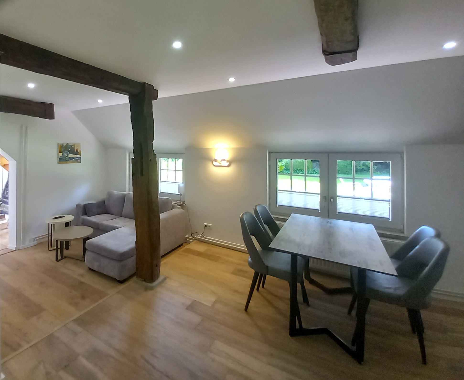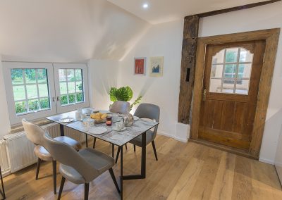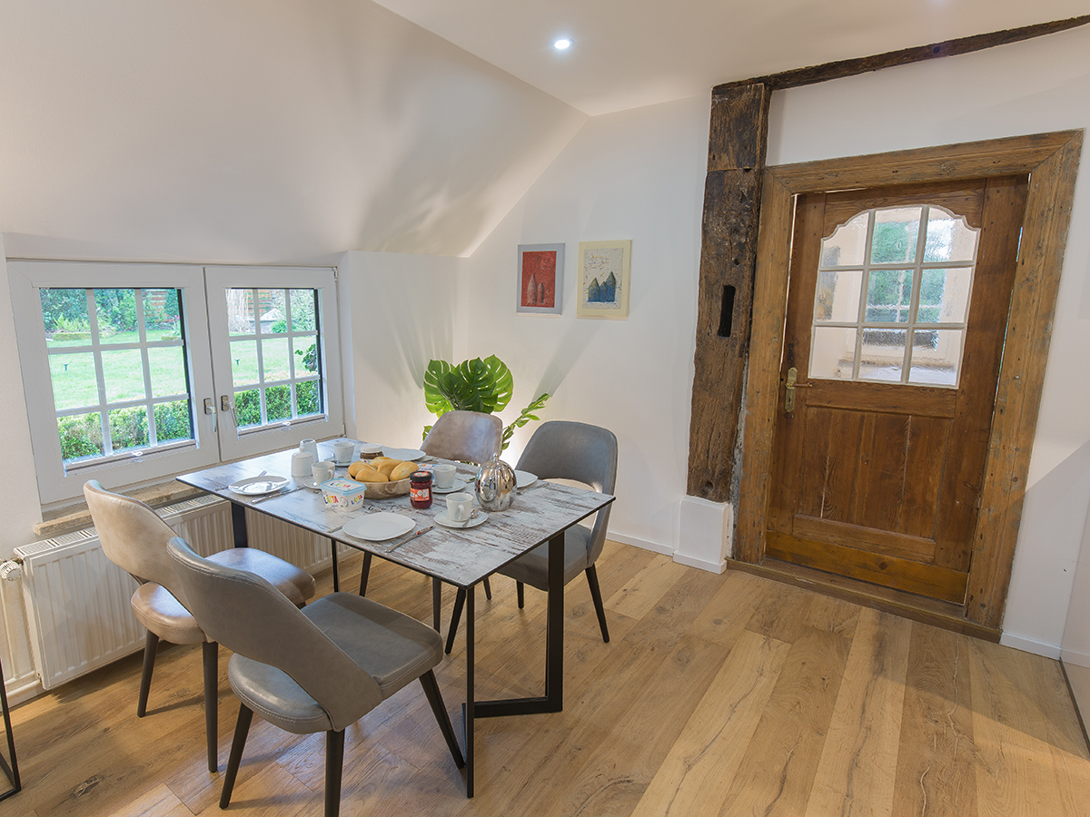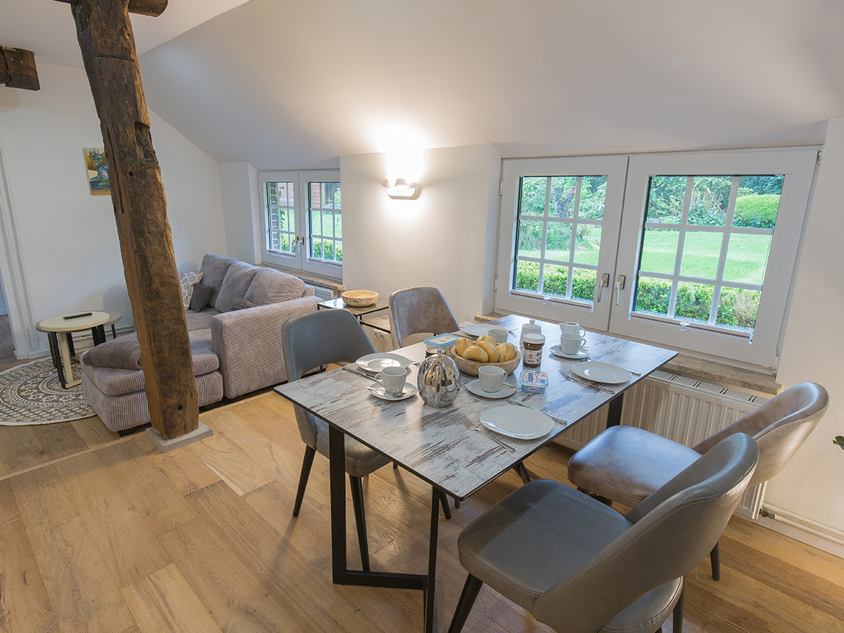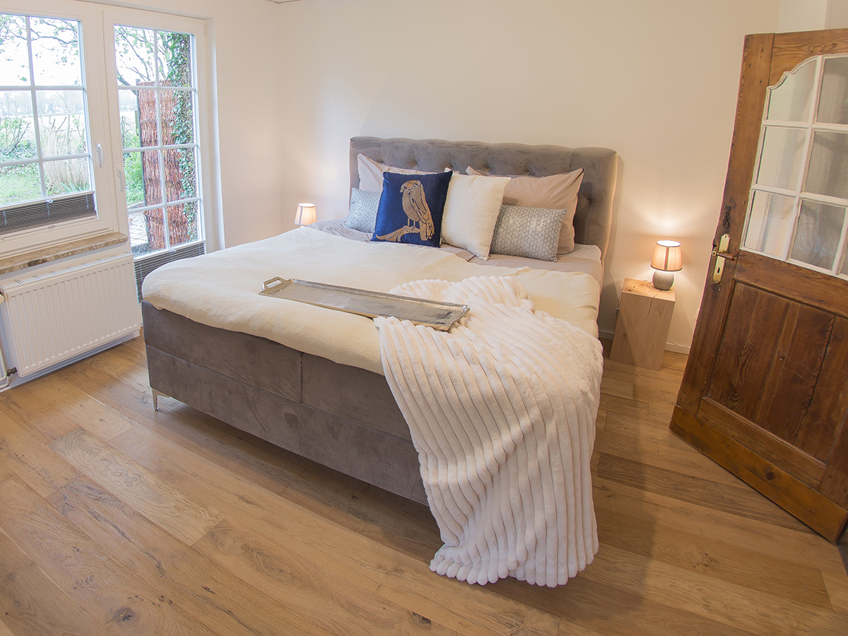Viel Mee(h)r als Ferien auf dem Land, verspricht diese außergewöhnlich großzügige Ferienwohnung auf 92m² Wohnfläche über 2 Ebenen. Für bis zu 5 Personen ist dieses hervorragend ausgestattete Feriendomizil mit 2 separaten Schlafzimmern ein wahres Urlaubsparadies. Freiliegende Balken und historische Türen sorgen für besondere Gemütlichkeit. Insbesondere der weitläufige Garten lässt Kinderherzen glücklich sein. Genießen Sie, nach langen Strandspaziergängen oder Radtouren durch das herrliche Umfeld einen Sommerabend im Garten.