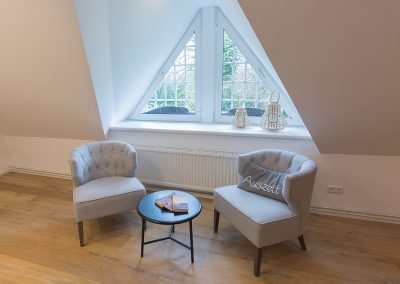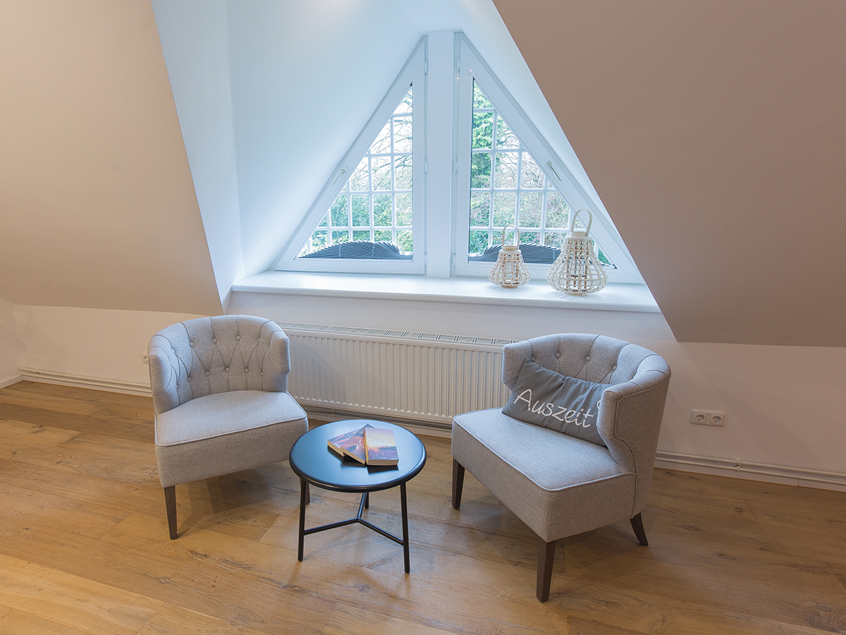 Neben einem Wellnessbereich mit finnischer Panoramasauna können Sie im weitläufigen Naturgarten entspannen, eindrucksvolle Hortensien, Rhododendren und prächtige Rosen bewundern, Vögel beobachten oder mit den Kindern spielen.