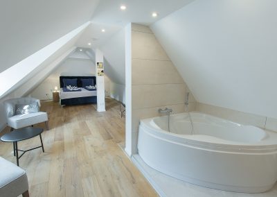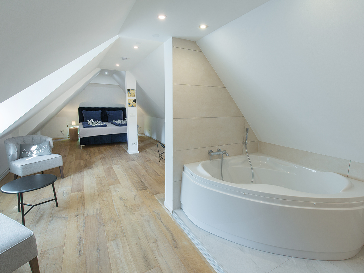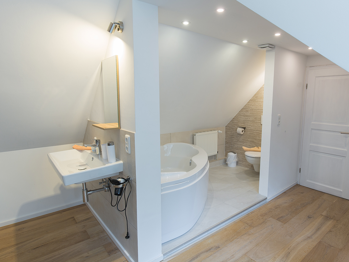 • Bad mit italienischen Fliesen, Walk-In Regendusche, Badewanne und Fußbodenheizung